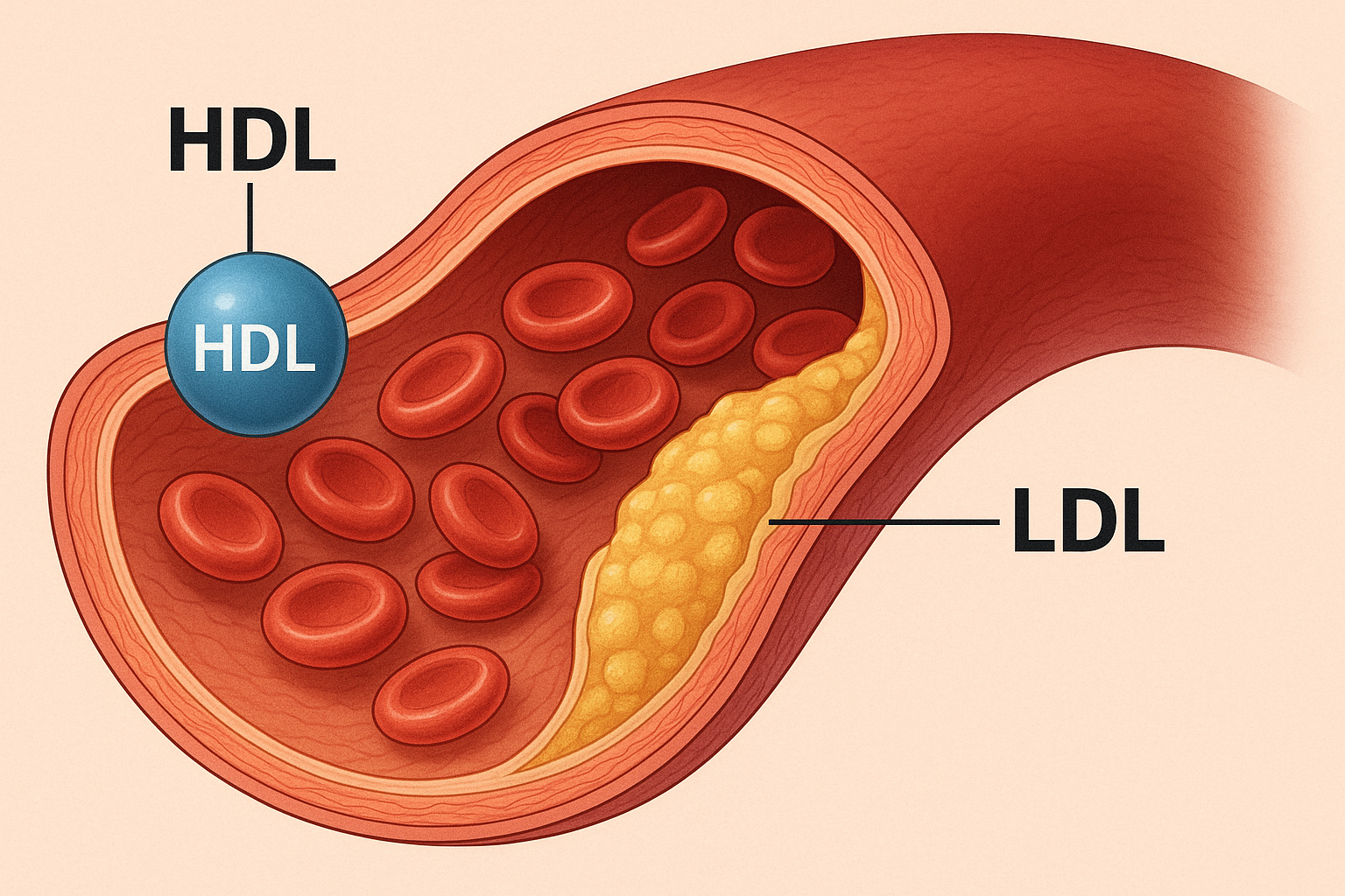 LDL transportiert Cholesterin von der Leber in den Körper und das HDL transportiert überschüssiges Cholesterin zurück zur Leber, wo es abgebaut wird. Das LDL hat, im Gegensatz zum HDL, weniger Bindungsstellen und bewegt sich auch langsamer im Blut als das HDL. Deshalb kann es im Blut zu Ablagerungen (vor allem an verletzten oder geschwächten Gefässwänden) führen. Es kommt so zur Bildung von Plaques, d.h. die Gefässe werden enger und starrer. Das nennt man Arteriosklerose. Eine solche Plaques kann Aufreissen und daraus können Blutgerinnsel entstehen. Diese können zu einem Herzinfarkt, Schlaganfall oder Beinarterienverschluss führen.